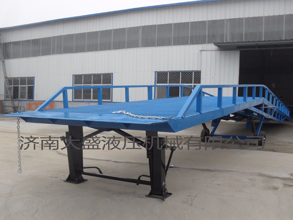 移動(dòng)式液壓裝卸過(guò)橋廣泛用于無(wú)裝卸設(shè)備的貨臺(tái)以及流動(dòng)裝卸場(chǎng)所,是與叉車(chē)配合使用的貨物裝卸輔助工具,借助該設(shè)備,叉車(chē)能直接駛?cè)肫?chē)車(chē)廂內(nèi)部進(jìn)行批量裝卸作業(yè)。只需單人操作,不需動(dòng)力電源,即可實(shí)現(xiàn)貨物的快速裝卸。這既減輕了勞動(dòng)強(qiáng)度,又成倍地提高了裝卸作業(yè)效率。加快無(wú)聊流通速度,獲取更大經(jīng)濟(jì)效益。
